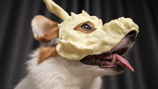 Besides designing goods for himself, Owen also created a custom mask for his Corgi. He first asked him to lie down for the scanning and then import the 3D model into Nomad, an app on his iPad for 3D creations. Inside the app, he created a dragon mask for his buddy and 3D printed it. The custom-make mask fits his dog perfectly, with the precise openings of its nostril and the contours of the face.