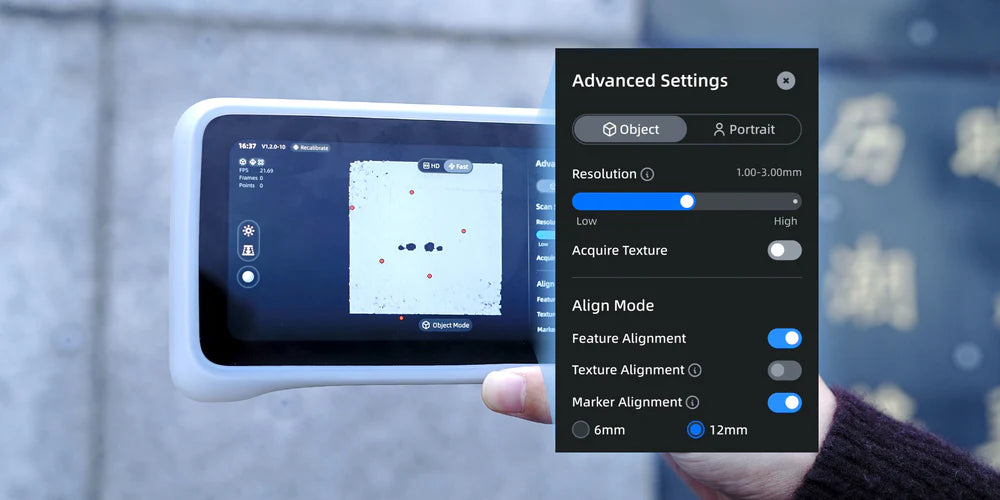 When scanning large, featureless objects, the 12mm markers help reduce the number of markers required, speed up the scanning process, and provide a smoother user experience, significantly improving both work efficiency and scan experience.
