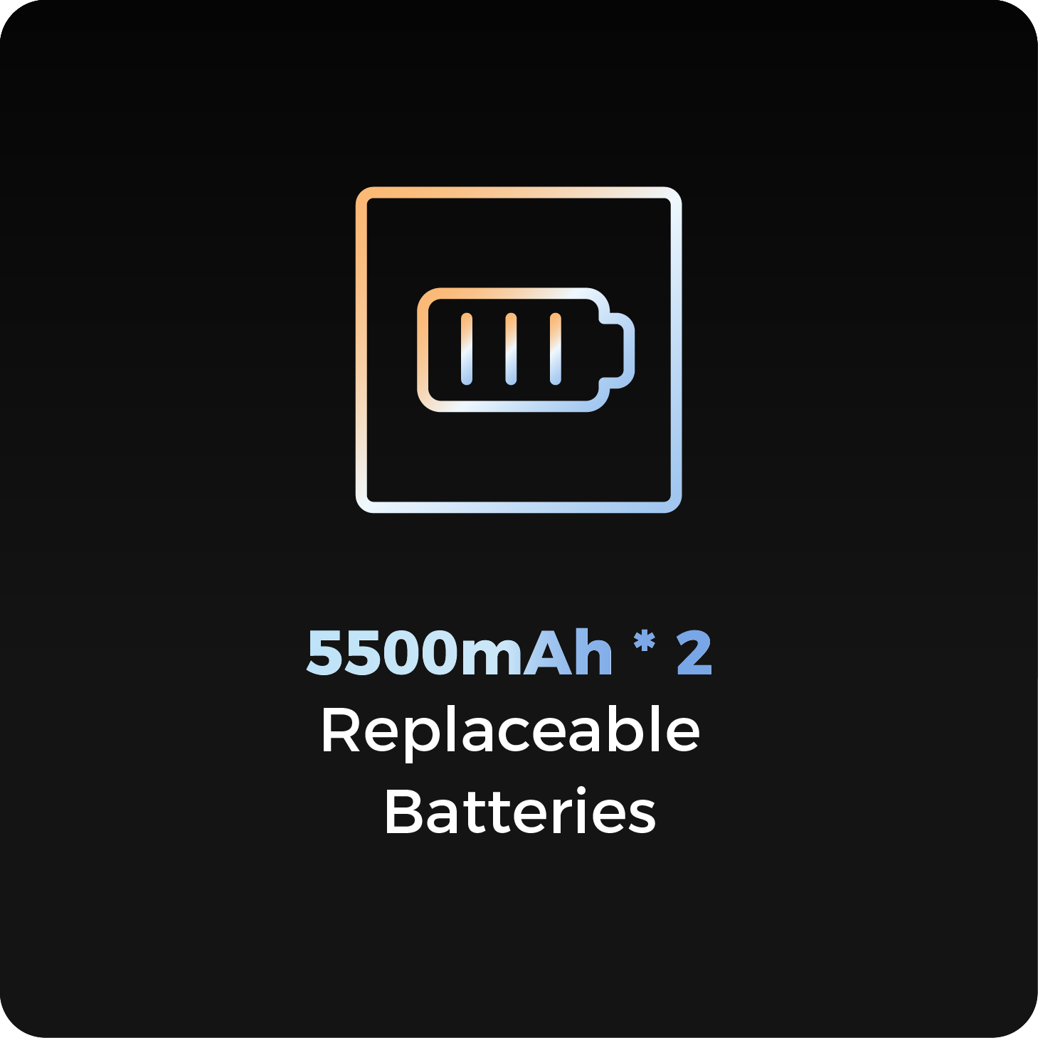 The device is powered by 2 x 5500mAh replaceable batteries, which can be quickly replaced (but currently does not support hot swapping). It also supports usb type-c power supply while charging and using simultaneously.