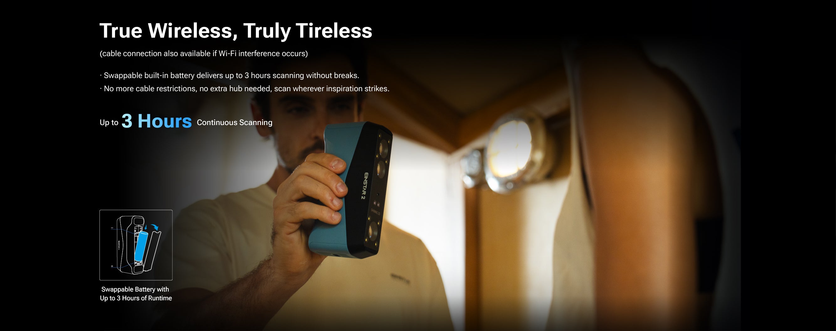 EINSTAR 2 has a built-in Wi-Fi module for wireless connection which means there is no additional accessories required, save setup time.The whole scanning process is wireless. A USB Type-C cable connection is also available for stable operation in case of Wi-Fi interference.