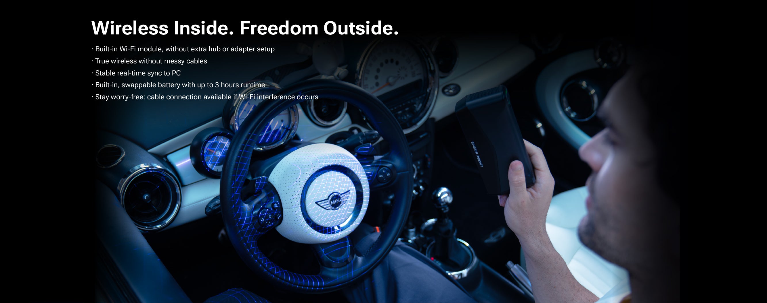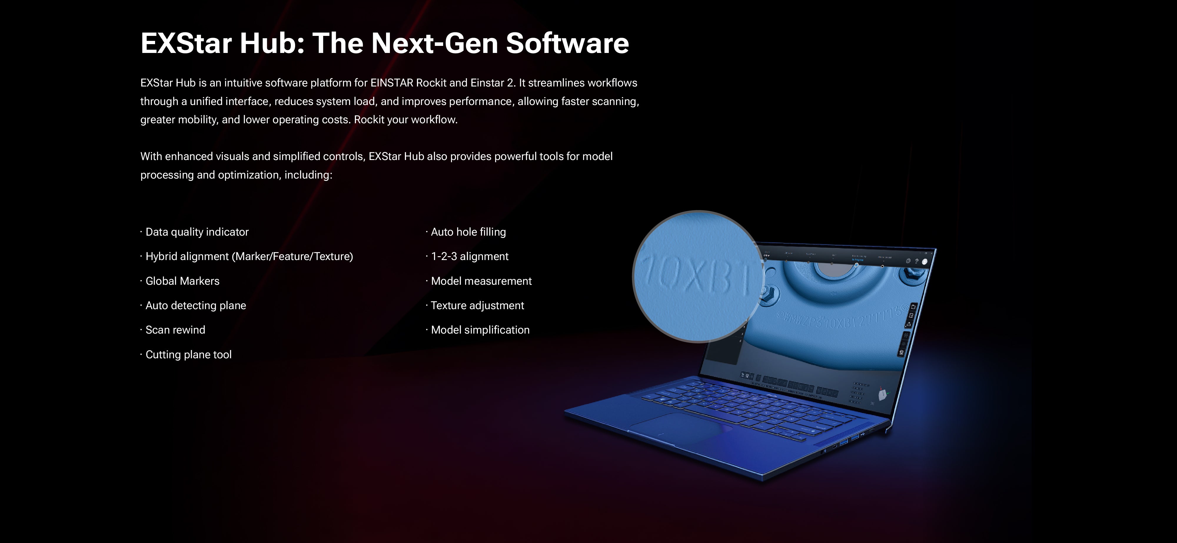 EINSTAR Rockit is a portable and high-efficiency 3D scanner ideal for users like product designers, Car engineers, 3D artists and makers. Its applications include automotive part scanning, digital art creation, AR/VR content production, and scanning outdoor objects like statues and sculptures.